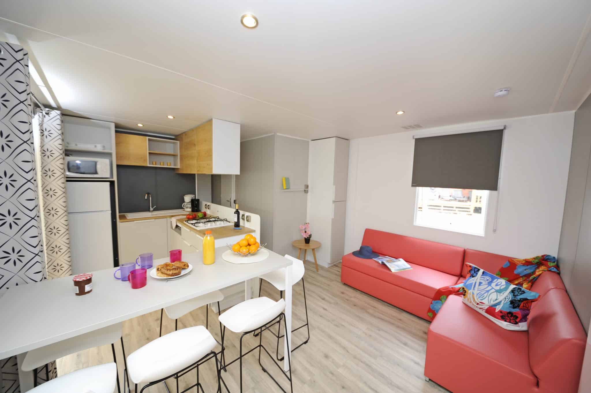 Whether you are with family or friends, we can accommodate up to 8 people (depending on the type). Indeed, our mobile homes in Aquitaine all have 2 to 3 bedrooms. Fully equipped, our rentals offer all the comfort necessary for a successful holiday. Moreover, you can decide to rent a mobile home with or without a covered, semi-covered or uncovered terrace. You will enjoy your travel with our pleasant wooded environment in the shade of the pine trees.